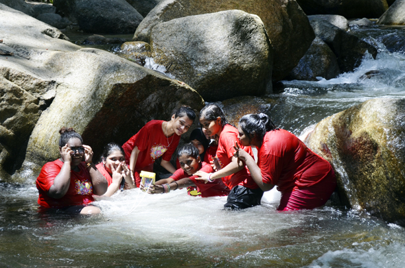 What’s a waterfall trip without water splash war?